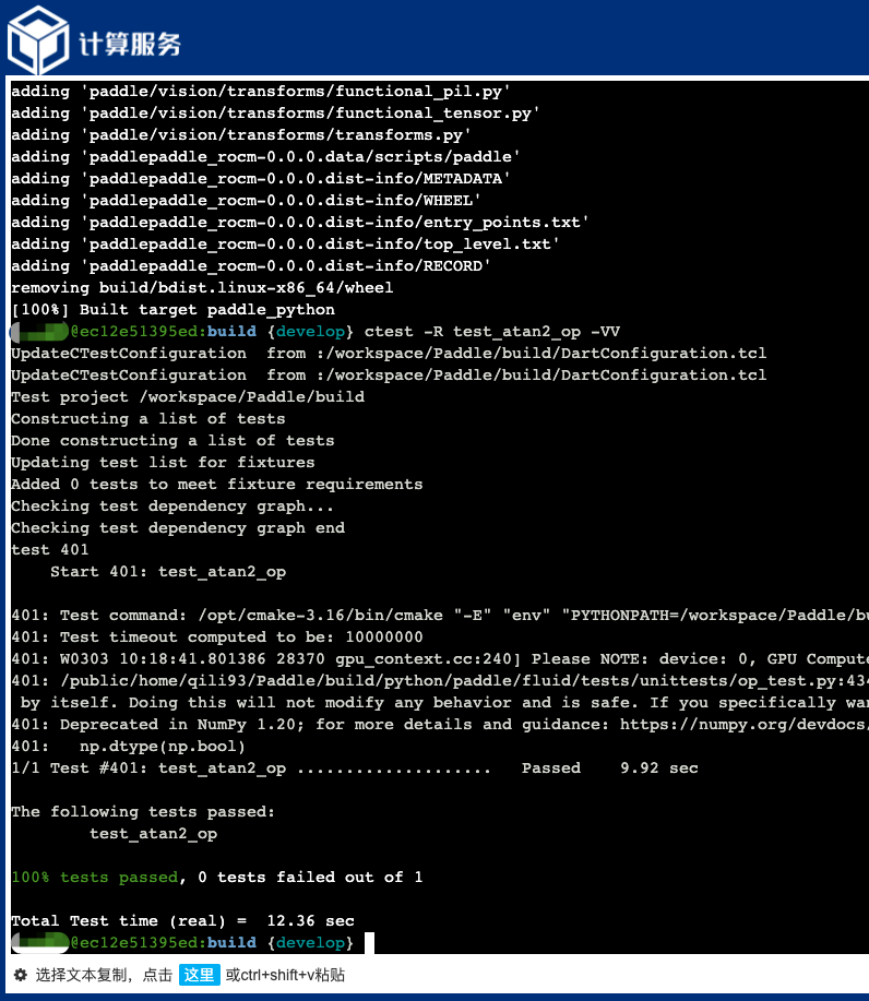 曙光智算平台-Paddle 源码编译和单测执行