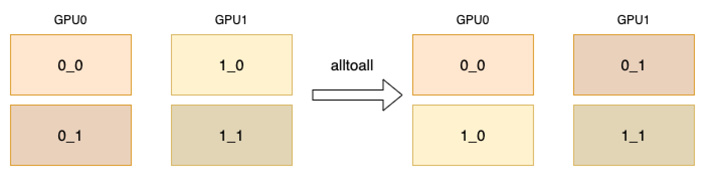 简单来说,该操作类似于 scatter + gather。更直观地,如果将全部进程上的数据看作一个矩阵,该操作类似于对矩阵进行转置。